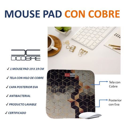 Mouse Pad con COBRE activo. Diseño CUADROS