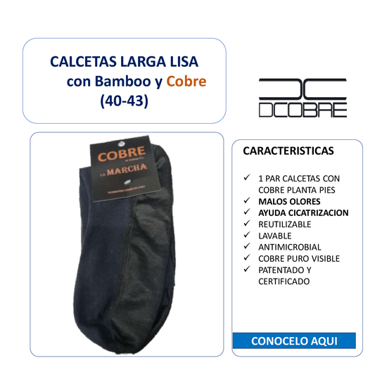 Calceta larga lisa Bamboo y Cobre, refuerzo planta pies con cobre puro, LA MARCHA, LIQUIDACIÓN.