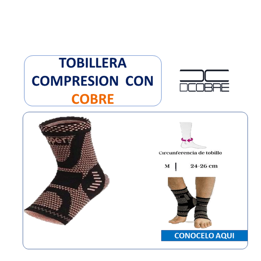 Tobillera de compresión con fibra de cobre. 1 unidad.