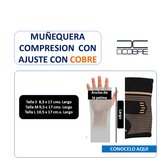 Muñequera compresión con ajuste con cobre.