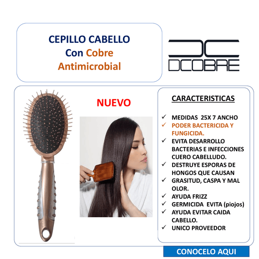 Cepillo para cabello color cobre, Cerdas con COBRE (todo tipo de cabello)