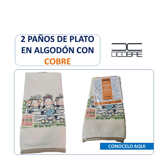 Pack 2 paños de platos Polycotton Cobre. elimina olores y germenes Diseño Vaquitas.