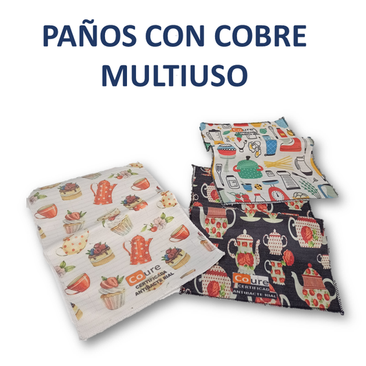 Pack 3 Paños con Diseños y COBRE activo. PACK COCINA