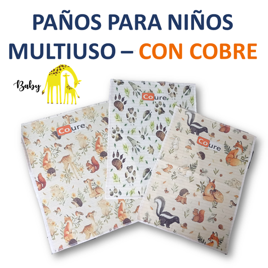 Pack 3 Paños con COBRE activo - Diseños para niños-