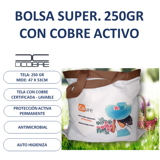 Bolsa SUPER para compras con COBRE activo. Tela 250gr