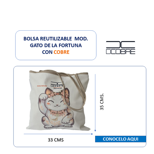 Bolsas Reutilizables Mod. gato de la fortuna. con cobre